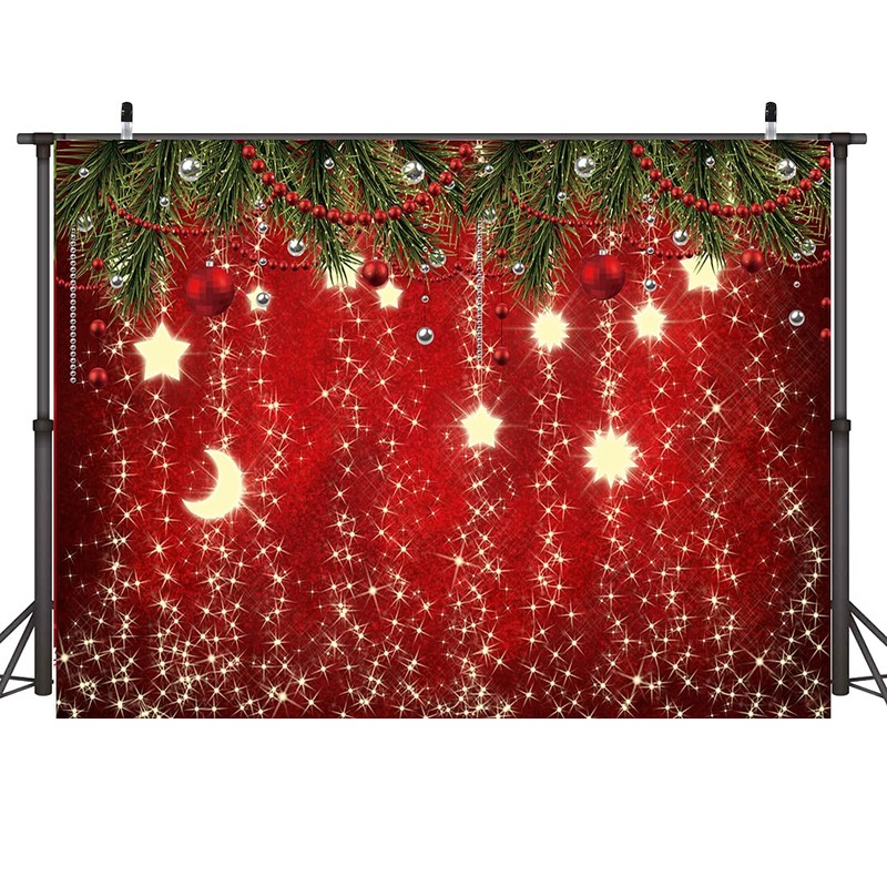 LTLYH 7X5ft Christmas Backdrops Red Ball Theme Background Shining Stars Background New Year Backdrop for Christmas Party Decoration Banner Photo Shoot 073