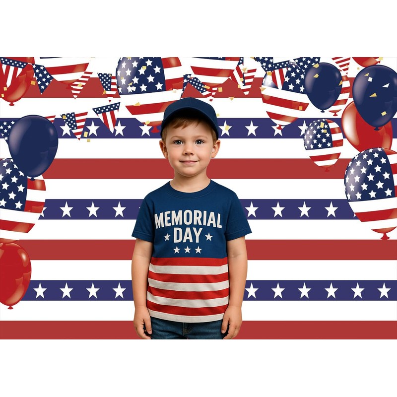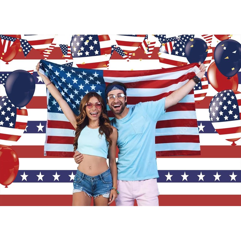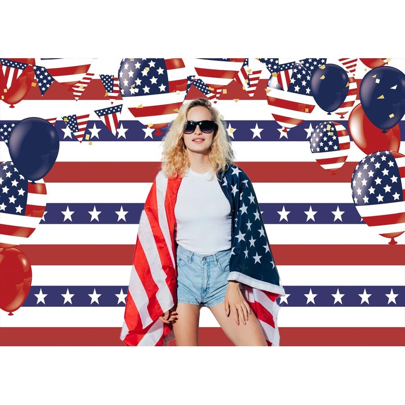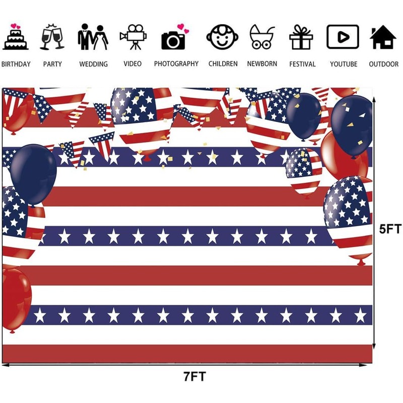 7x5FT American Flag Stripes Backdrop – Red White Blue Patriotic Balloons Background for 4th of July, Memorial Day, Veterans Day, Independence Day Party Decorations, USA Themed Photo Booth Banner139
