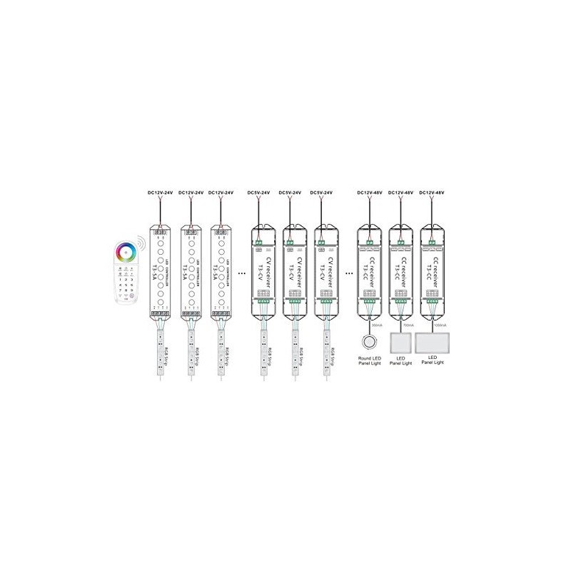 NOTE:T3 RGB Remote is ONLY suitable for T3-CV (ASIN: B01EJ0RWCK), T3-CC (ASIN: B01EIYSFC8) and T3-5A(ASIN:B01EEZD1WK).If you want to control RGB led strip, you need purchase T3-CV or T3-5A receriver separately. If you want to control led panel light, you need purchase T3-CC receriver separately.