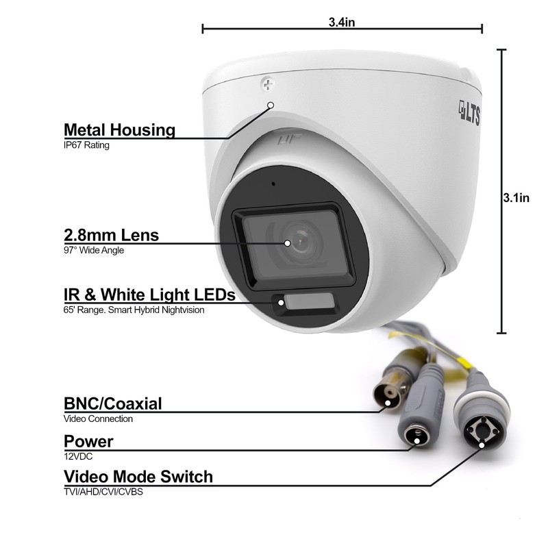 LTS CMHT2122-28LF HD TVI 2MP 2.8mm Lens 65ft Smart Dual Light 4in1 Dome Camera LTCMHT2122-28LF