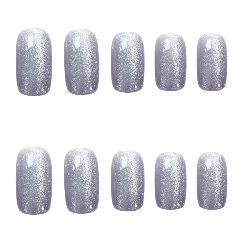 LTTECH Press On Nails - Shining Grey Metallic Finish | Medium Square Gel Nails, Fake Nails in 10 Sizes - 24 Soft Gel Nails Kit