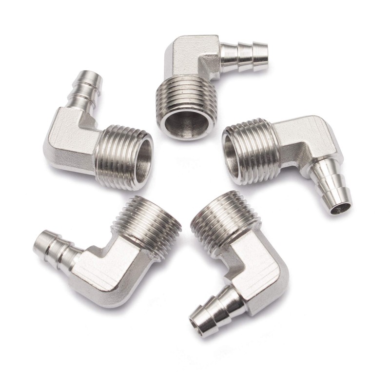 LTWFITTING 90 Degree Elbow Stainless Steel 316 Barb Fitting 3/8" Hose Barb x 1/2" Male NPT Air Gas (Pack of 5)