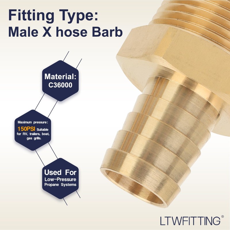 LTWFITTING Brass Fitting Connector 3/4-Inch Hose Barb x 1-Inch NPT Male Vehicle Fuel System Heater System (Pack of 5)