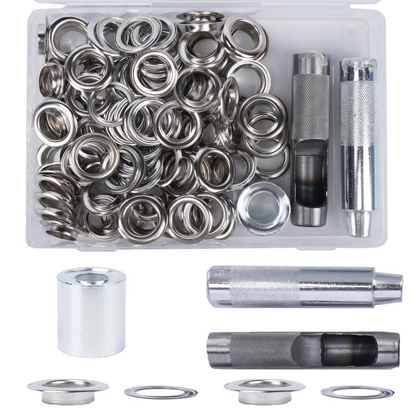 Luabue 200PCS 18MM Grommets Eyelets Tarpaulin Repair Kit Eyelet Punch Kit Metal Eyelets for Fabric Leather Craft Tarpaulin Curtains DIY and Decoration