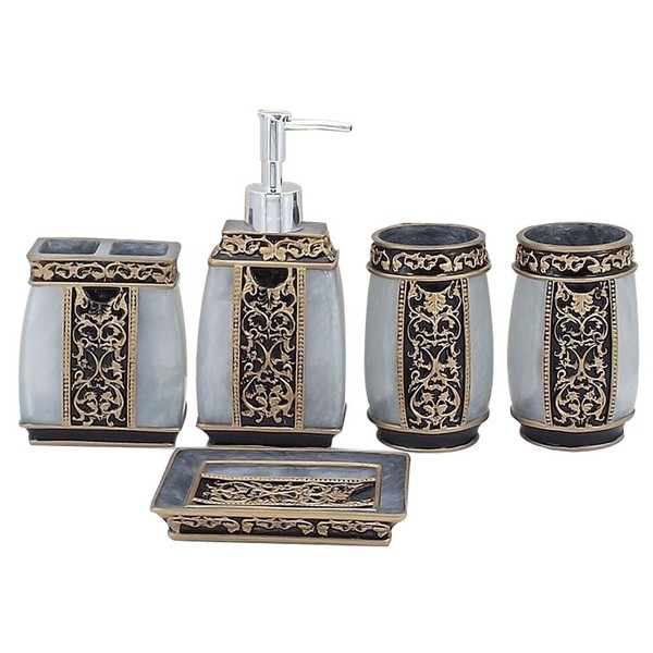 LUANT Creative Bath Ensemble, 5 Piece Bathroom Accessories Set, Collection Bath Set Features Soap Dispenser, Toothbrush Holder, Tumbler, & Soap Dish- Silver