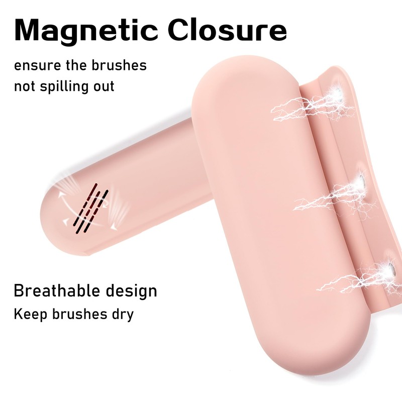 LuBanOne - Soporte para brochas de maquillaje, cierre magnético, organizador de brochas de maquillaje, bolsa de maquillaje, accesorios de viaje (rosa)