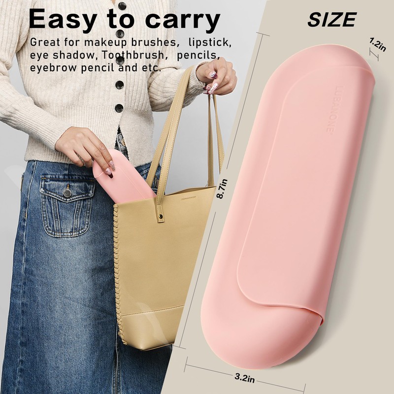 - Gran capacidad: tamaño de bolsa de maquillaje de silicona (8.1 x 3.2 x 1.2 pulgadas) suficiente para guardar todos tus cepillos de viaje. Es perfecto para día festivo, trabajo o uso diario.