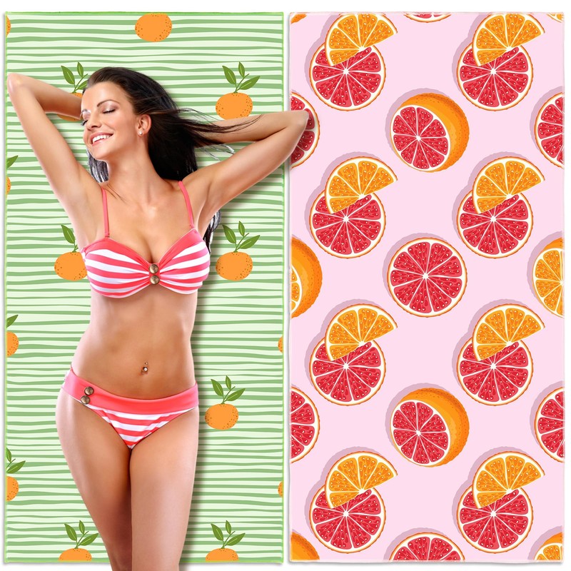 Lubibi Beach Towel, Oversized Microfiber Beach Towel for Adult Kids, 2 Pack Fruit Towel, Lightweight Extra Large Quick Drying Sand Free Pool Towel for Swimming, Sports, Beach, Gym(80 * 160cm)