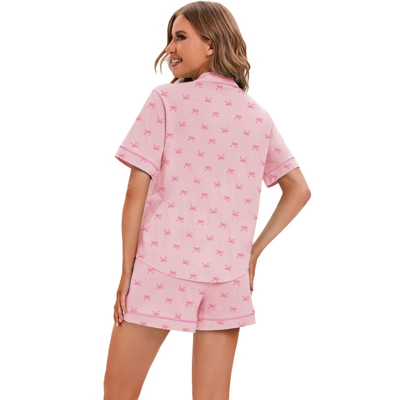 LUBOT 100% Cotton Pyjamas for Women, Sleepwear, Short Long Pyjamas Set with Collar Buttons, Soft Lightweight Two-Piece Pyjamas, Pjs, Leisure Suit, Loungewear, Short -, XXL