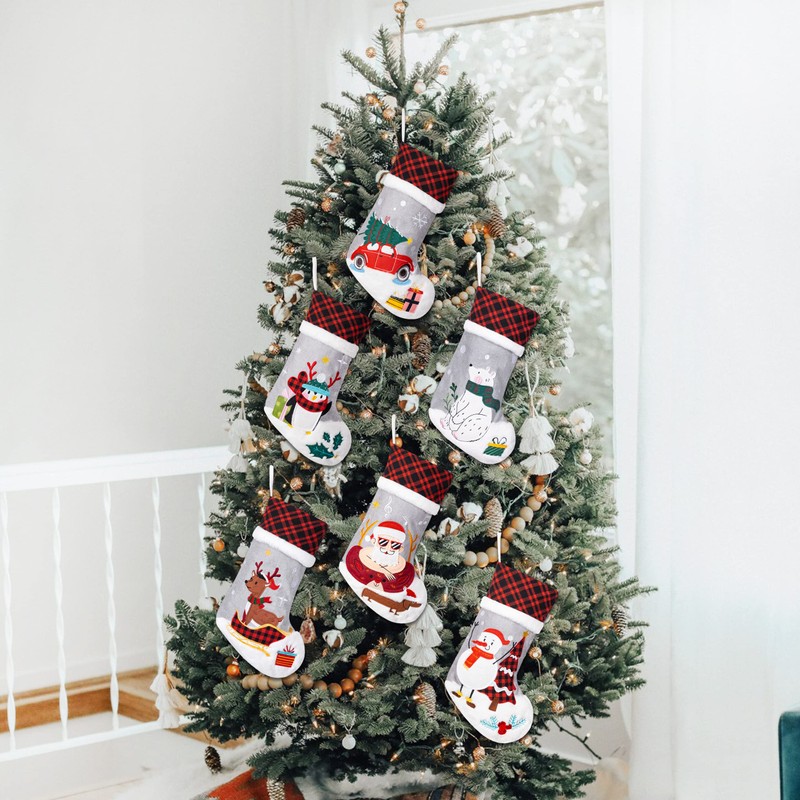 • ✔Application: Each stocking has a sturdy hanging loop. The Christmas Stocking can be hanged on Christmas trees, fireplaces or anywhere in the house with the loop. The ample size won't limit Santa's generosity.