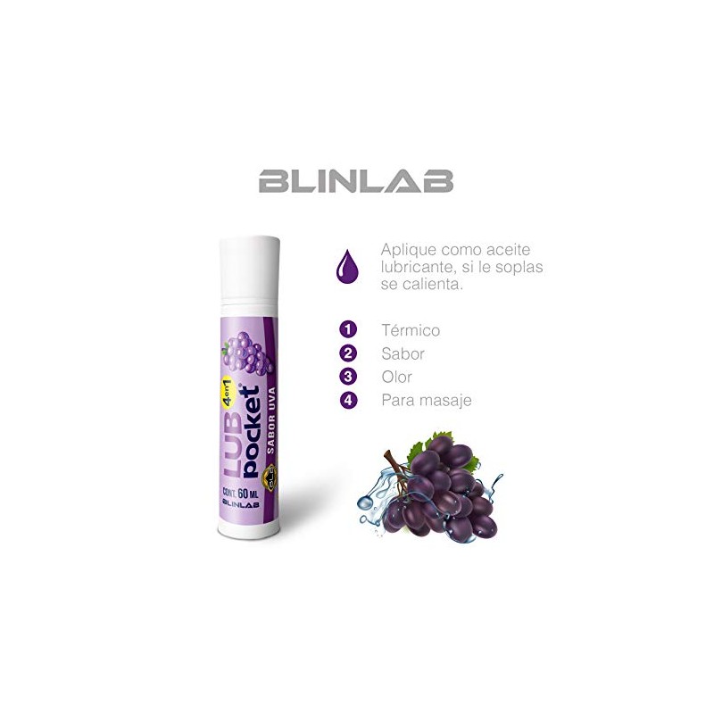 Blinlab - Lubricante"Lub Pocket" de Uva 60 ml. Lubricante para el cuerpo. Disfruta del mejor aroma y sabor. Puede ser usado para masajes y si soplas se calienta ya que es térmico.. ⭐ Calidad premium certificada con excelentes reseñas. Diseño ergonómico y funcionalidad excepcional. 🏆 Recomendado por expertos. Ideal para quienes buscan lo mejor en calidad y estilo. Producto auténtico con satisfacción total asegurada. ¡No te quedes sin el tuyo y aprovecha esta oportunidad única!