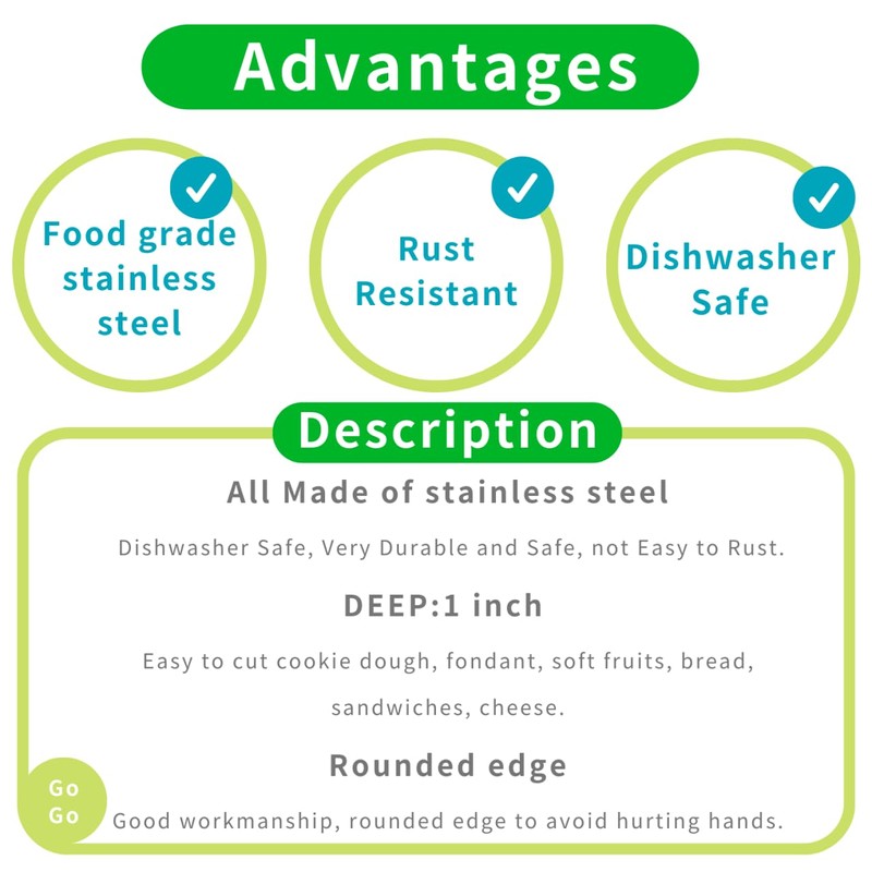 - Size:About 3.0 x 4.33 inch.DEEP:1 inch.Easy to cut cookie dough, fondant, soft fruits, bread, sandwiches, cheese.