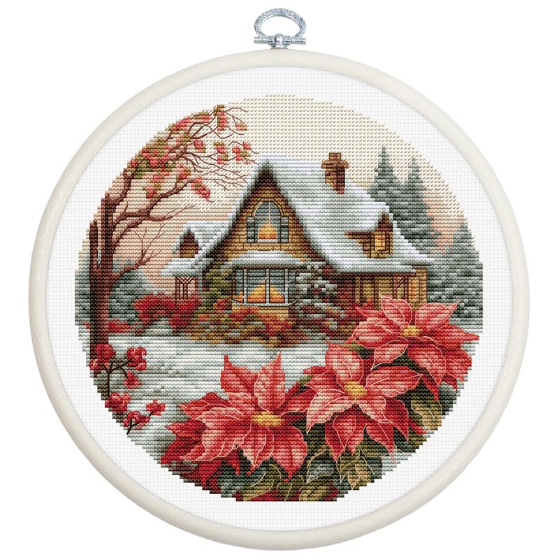 Luca-S Cross Stitch Kit with Hoop Included Little House in The Forest, BC227, Counted Cross Stitch Kit for Adults, Needlecraft and Embroidery Kit