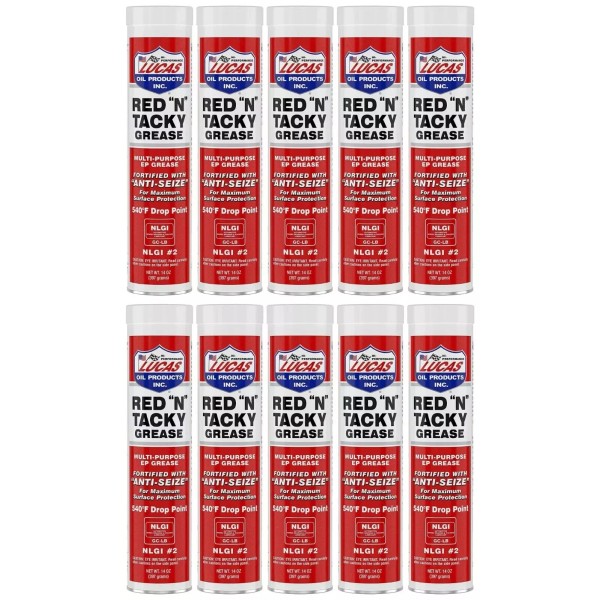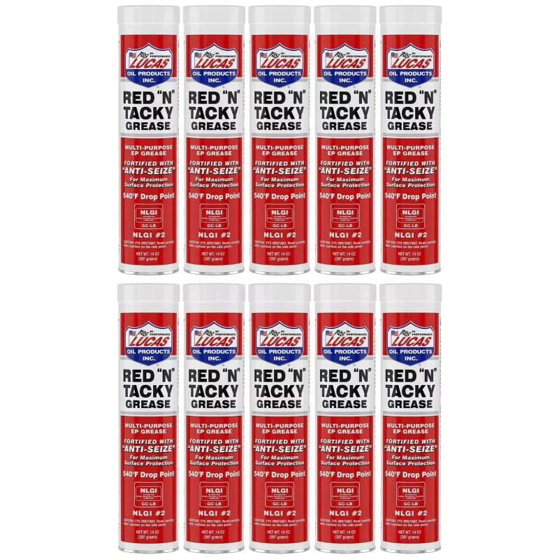 Lucas Oil 10005-30, Red 'N' Tacky Grease, Lithium Complex Grease, 14 Oz (Qty 10)