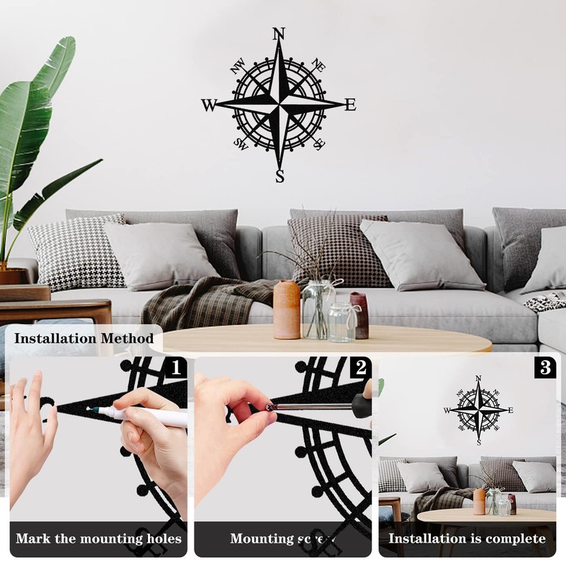 - Easy to install: On the top of the metal compass there is a small ring that can be easily hung on the wall. It may be slightly deformed due to transport, please adjust to the best condition by hand.