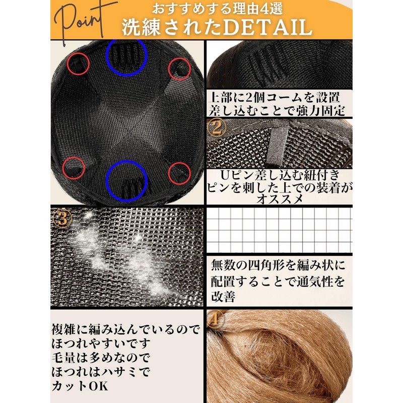 - (3 Features) 6. Features: 2 secure levels: The top and bottom 2 combs and U-pin strings make it easy to secure and secure. Even those with short circuits can be used if they can have small bugs. Mesh processing: The lining is made with a square mesh structure to improve breathability. (Natural Heated Hair) By putting the hair into the foundation you can reproduce a more natural and beautiful hair