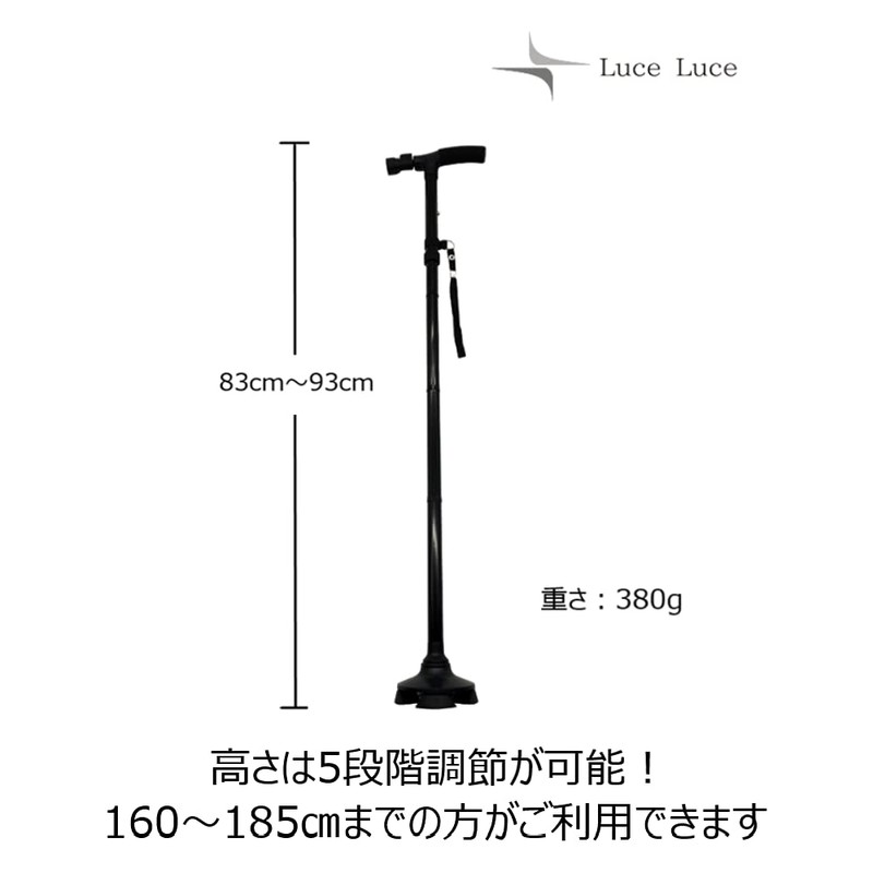 Luce Luce つえ 介護 四点支持 軽量 杖 ステッキ 安定感 優しい 自立式 4点立 折りたたみ LEDライト 高さ調節 男女兼用 倒れない 敬老の日 【理学療法士推薦】 ご注意 電池は付いていません