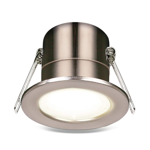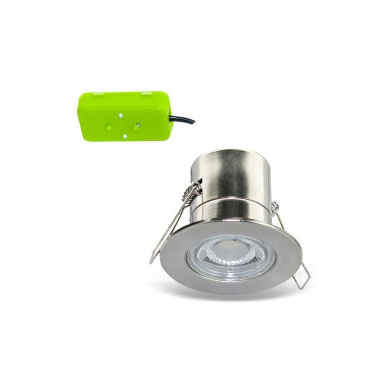 Luceco F-Eco GU10 Standard Fixed Dimmable Downlight, 5 Watts, 3000K Colour Temperature, Brushed Steel Alloy Steel