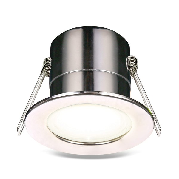Luceco F-Eco GU10 Standard Fixed Dimmable Downlight, 5 Watts, 3000K Colour Temperature, Polished Chrome