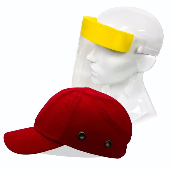 Lucent Path Red Baseball Safety Bump Cap Helmet Hard Hat Head Protection Cap with 3 Pairs Disposable Face Shields