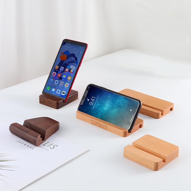 LUCENTIS Natural Black Walnut Wood Phone Stand, Double Slot, 2 x 8 x 8 cm Wooden Phone Holder