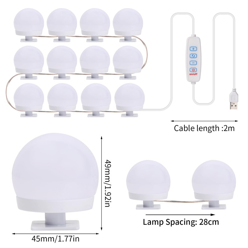 - ✨CABLE USB CONVENIENTE: Nuestras luces de espejo están equipadas con un cable USB de 5 V/2 A fácil de usar, que permite múltiples opciones de conexión: cargador USB, toma de pared USB, banco de energía, cargador de teléfono, interfaz USB de computadora portátil o cualquier otro puerto USB, conveniente para cualquier lugar.
