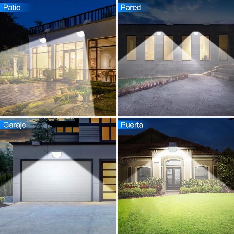- ✹Dispone de detector de movimiento: Cada luz tiene 200 chips LED de alta potencia, puede producir hasta 1000LM de salida de iluminación de alto brillo 6500K. El sensor de movimiento PIR se activará por el ser humano, animal, coche, no por la iluminación, el viento, la lluvia. La dirección de la luz y el panel solar es fácilmente ajustable. Se puede girar hacia arriba y hacia abajo 150 grados para satisfacer su enfoque deseado. El ajuste del panel solar facilita una exposición óptima a la luz solar y una mayor conversión de la energía solar.