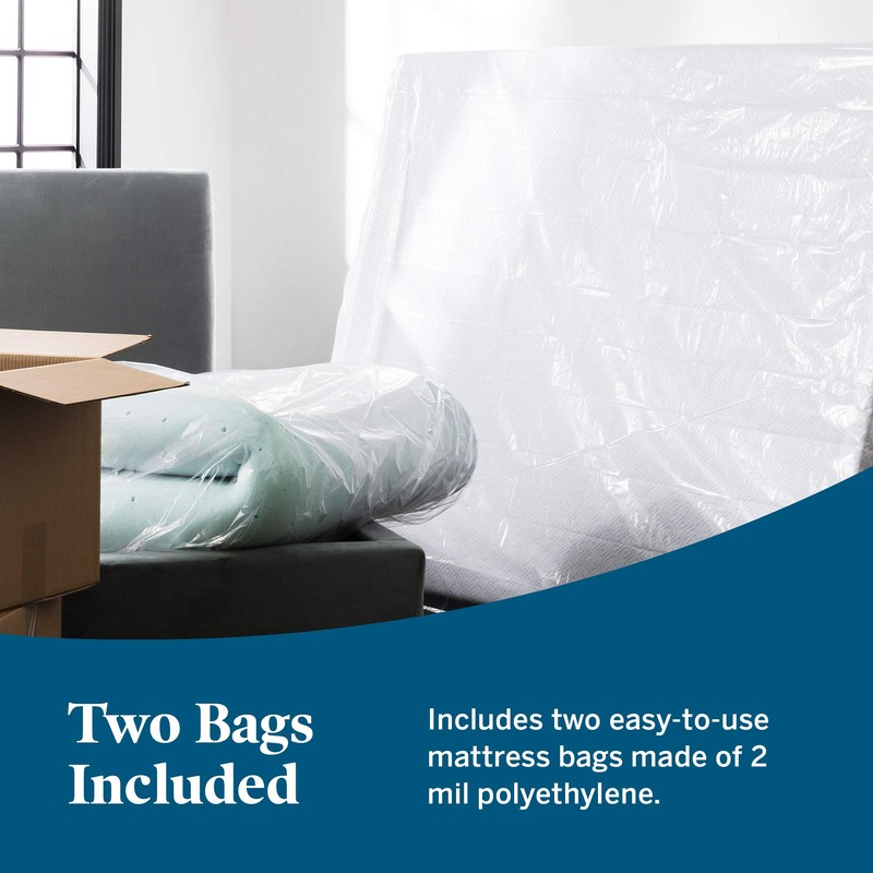 - Includes two easy-to-use mattress bags made of 2 mm polyethylene for total mattress and box spring solution
