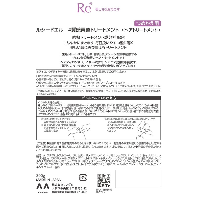 LUCIDO-L #Texture Reconditioning Treatment, Refill [Damage Repair] Osmanthus x Grapefruit Scent