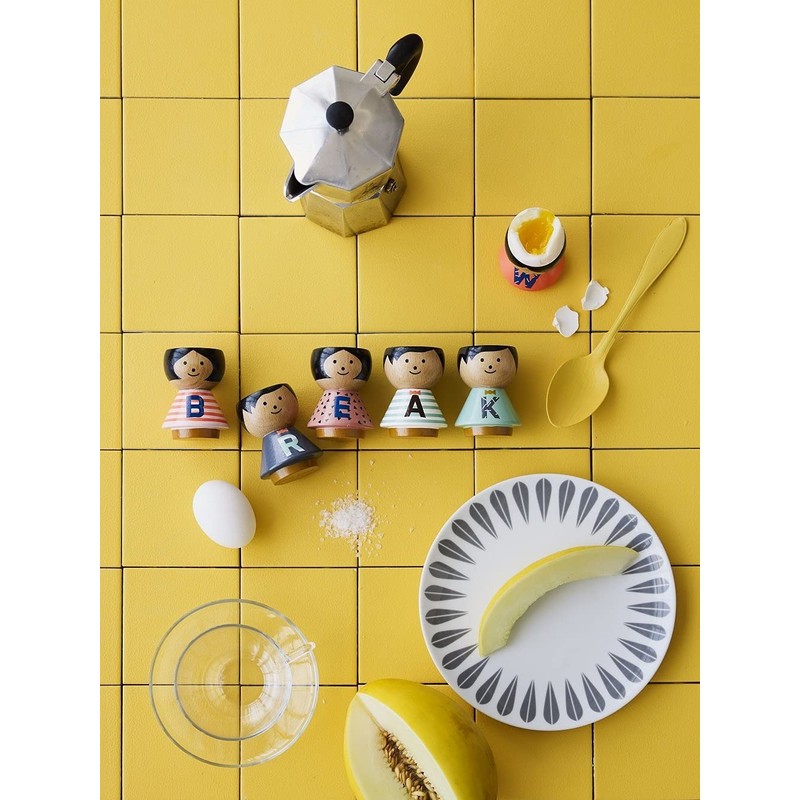 - The egg cup from Lucie Kaas shows a grandpa in a blue jumper