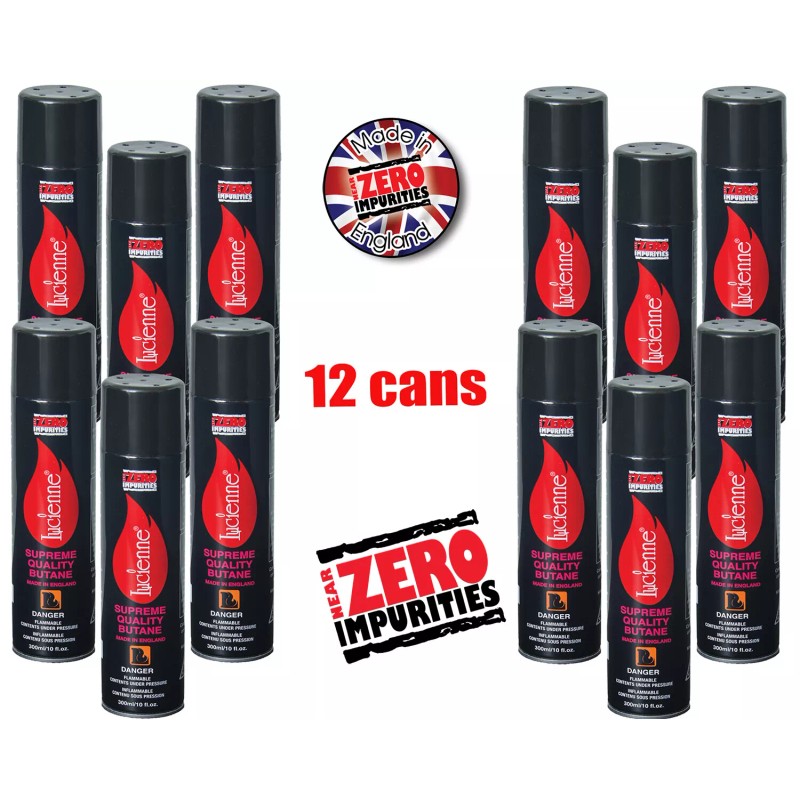 Lucienne 12 Cans 300ml Lucienne Quadruple Refined Lighter Refills Butane Fuel