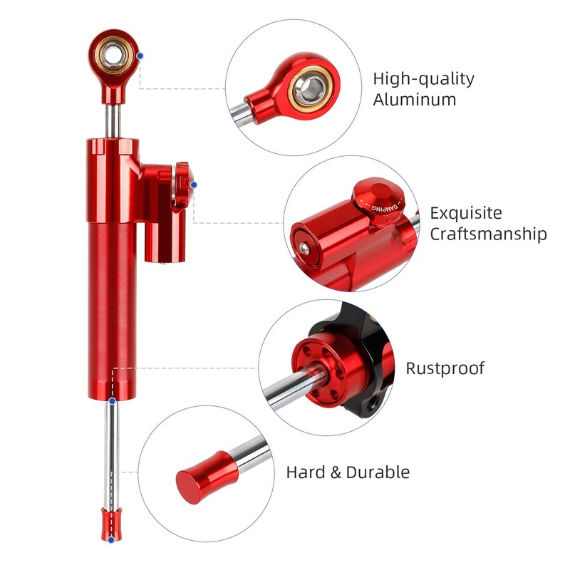 - 【Premium Material and Technology】: This steering shock absorber is made of high-quality aluminum, the surface is anodized, anti-rust, anti-oxidation, strong, not easy to age and wear, ensuring excellent stability and durability, long-lasting use.