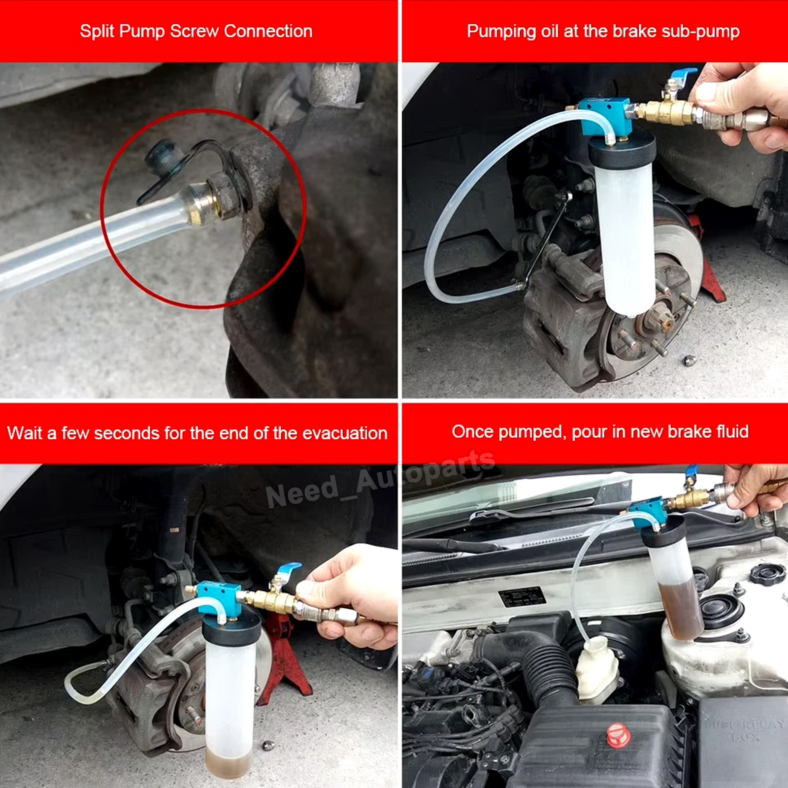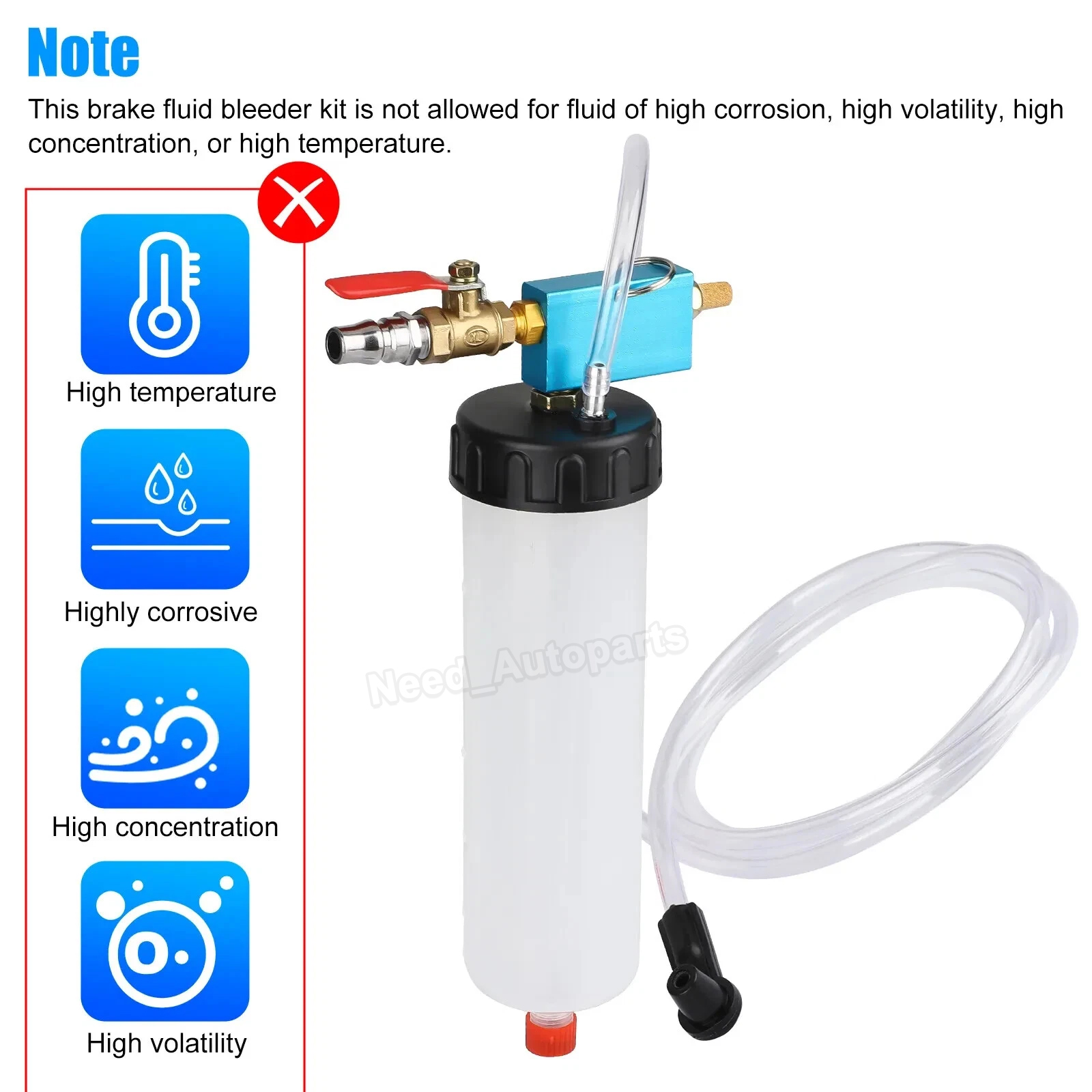 Note: This brake fluid bleeder kit is not allowed for fluid of high corrosion, high volatility, high concentration, or high temperature.