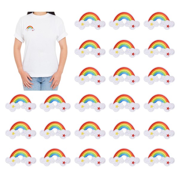 Luckforest 15 Pcs Rainbow Iron On Patches, Rainbow Cloud Embroidered Applique Patches, DIY Sew On Repair Patches for Hats Shoes Bags Jackets Jeans