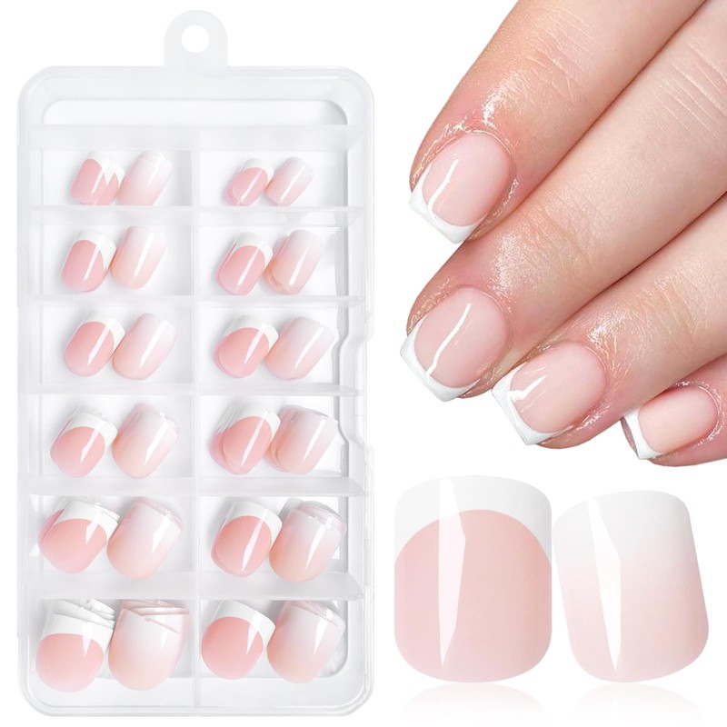 - High-Quality Press-On Nail Kit: The short french press on nails are made of high-quality ABS materials,and using high-quality ABS material, not soft and flimsy, not easy to crack.This white square press on nails design looks and feels as real acrylic nails.This french tips are designed for a hassle-free application up to 1/2 weeks, giving you long-lasting and glamorous nails.