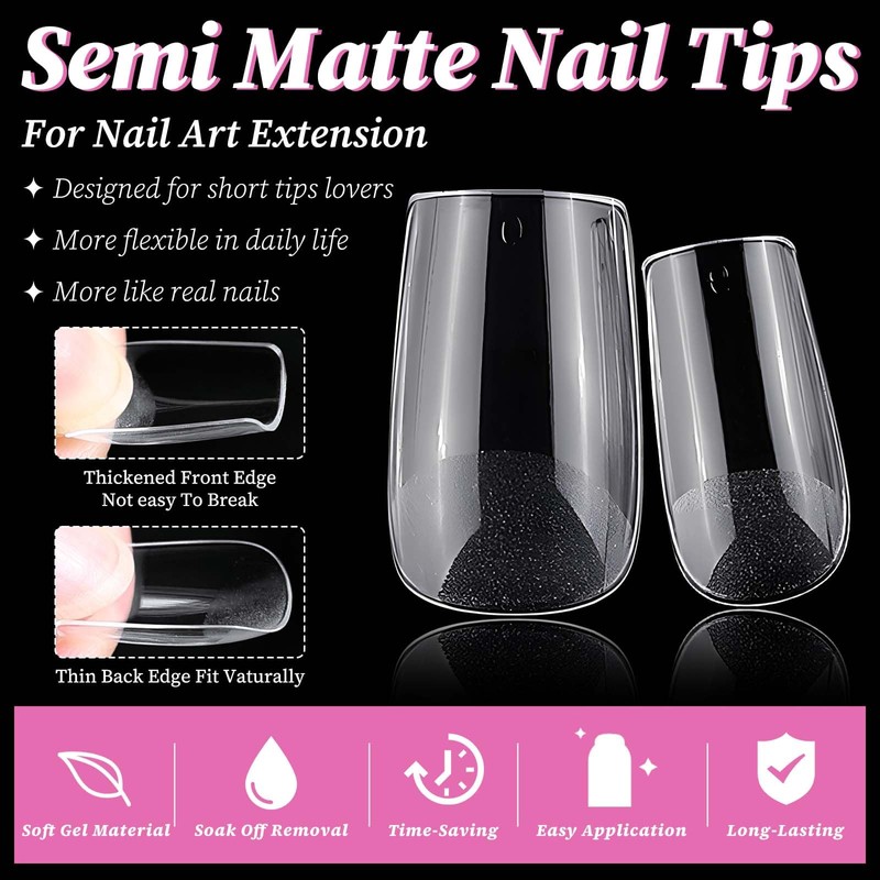 ✔ Ultra-Thin & Lightweight – Short square nail tips half matte feature a 0.3mm thickness, square gel tips short are flexible, breathable, and comfortable for all-day wear.