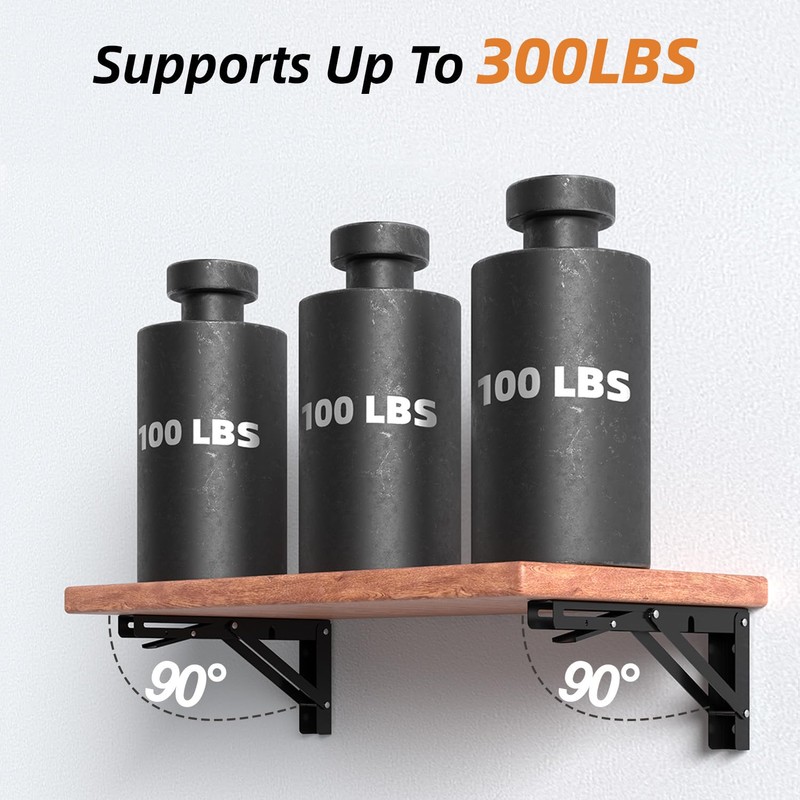 - Sturdy and Durable: Folding shelf brackets designed to support boards ranging from 16 to 18 inches wide; each pair of collapsible shelf brackets features a sturdy triangle structure capable of holding 300 lbs, making it ideal for various heavy-duty applications.