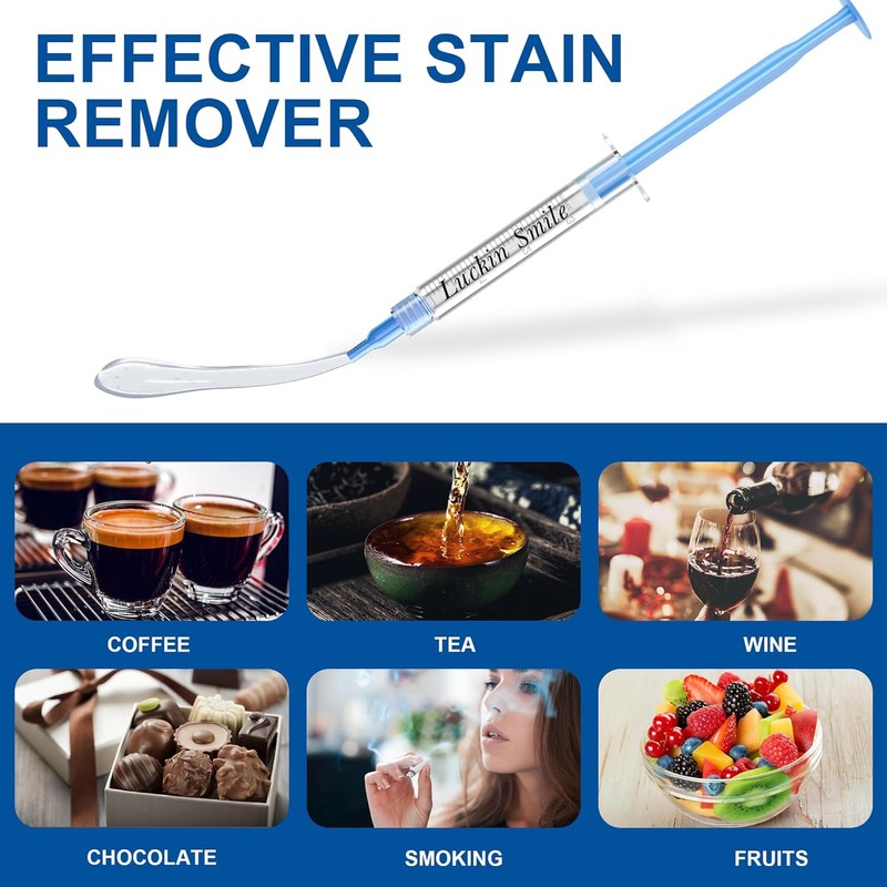 • TEETH WHITENING - LUCKIN SMILE Teeth whitening gel is made with professional grade ingredients (35% Carbamide Peroxide) that are safe to use and will not harm your teeth or enamel, and quickly removes years of accumulated stains from coffee, tea, wine, cigarettes, and more.(Note: trays not included)