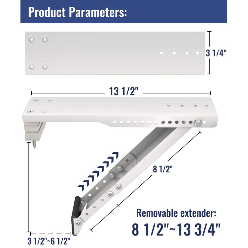 - 【Adjustable Leg】 The unique design of the leg extender allows you to freely adjust the length of the support arm ( from 8 1/2'' to 13 3/4'' ) , which well adapted to the different outside wall, relieved weight stress on window frame
