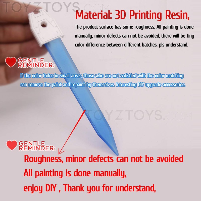 - (3) Material: 3D Printing Resin, The product surface has some roughness, All painting is done manually, minor defects can not be avoided, there will be tiny color difference between different batches, pls understand