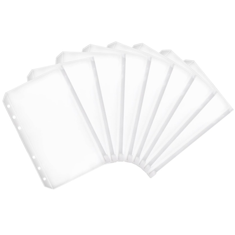 Luckious 8 Pcs A6 Size Plastic Zip Binder Pouch, 6 Hole Perforated Plastic Binder Zip Folder Waterproof Loose Leaf for Notebook, Files, Photos, Bills, Organiser, Cash, Envelope