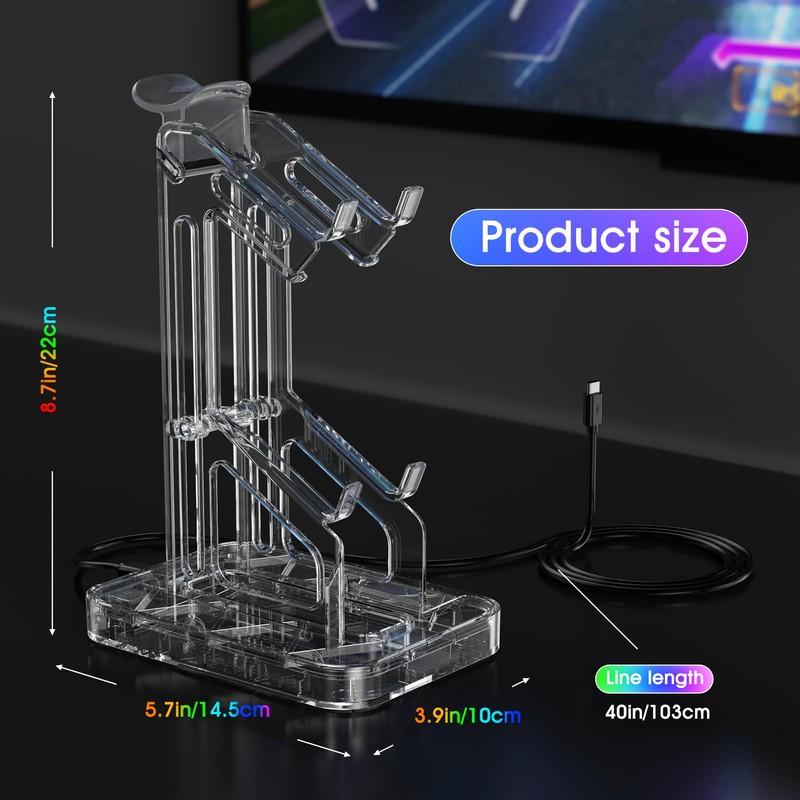 - 【Controller Holder & Headset Stand】All universal models can be perfectly stored or displayed. It can hold 1 headphone and 2 controllers at the same time. Made of acrylic, it not only a stand but also a beautiful storage product to save your desk space.