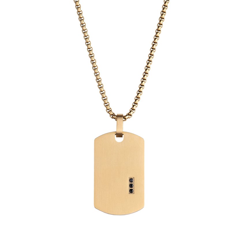 - DISEÑO ÚNICO Y EXCLUSIVO: El collar para hombre Gavin, es de las cadenas para hombre con dije más únicas. Este collar hombre es de acero inoxidable con baño de oro 18k acabado mate, tiene una placa con zirconia cúbica negra; le da un brillo y resistencia inigualable. Esta cadena de oro para hombre con dije es un básico; se puede utilizar sola la cadena o con dije. Es de la joyería de hombre más sofisticada, además es de los regalos para papá, regalos para novio y regalos para hombre originales.
