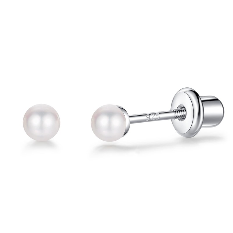 LUCKMORA 925 Sterling Silver Earrings Stud with Screwback Simulated Pearl for Women Earring With Screw Backs Hypoallergenic for Girls (pearl-3mm)