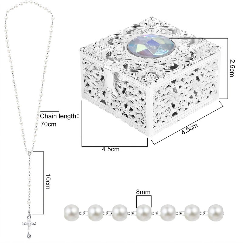- Exquisite box: Our rosary beads are packed in a beautiful box. This box is made of zinc alloy, with a hollow pattern and a 2cm gemstone on the lid. Men and women. Our jewellery necklace is characterised by aesthetic designs, impresses with a stylish design.