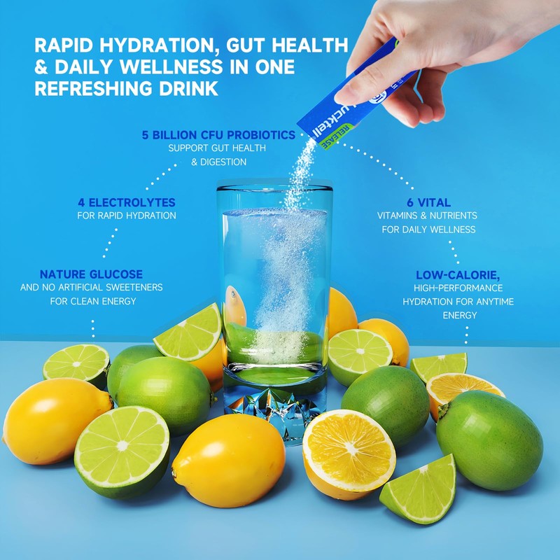 - Optimized Electrolyte & Vitamin Formula for Maximum Hydration: LuckTell electrolyte powder packets provide an advanced blend of 3 essential electrolytes (Magnesium, Potassium, Chloride, Sodium) and 6 vitamins (Vitamin C, E, B6, B12, Niacin, Pantothenic Acid ). This scientifically crafted formula supports hydration, electrolyte balance, and digestive health with added probiotics, perfect for athletes, fitness enthusiasts, and everyday hydration.