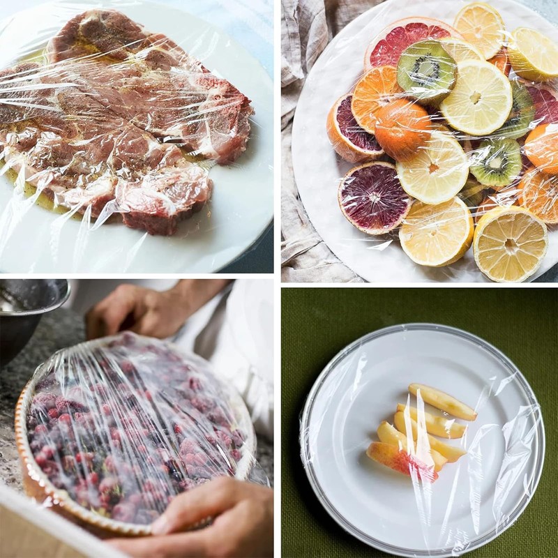 - Easy to use: the cling film with elastic band can be stretched up to 35 cm, keeps insects and dust out, easy, quick to use. The transparent cover can not only be used as cling film, but also can be used as a shower cap.