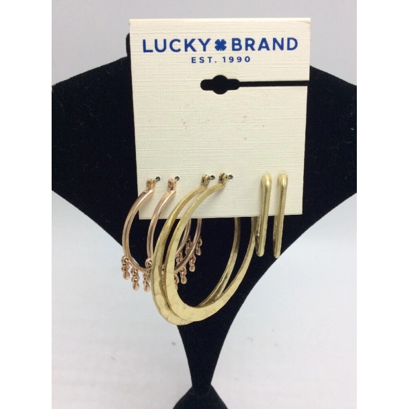 Lucky Brand $39 Lucky Brand two tone 3PC pave bead hoop earrings #501