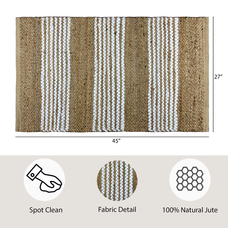 Lucky Brand – Jute Rug | Bridgette Multi Stripe Motif | Rectangular Accent Rug | 100% Natural Jute Fiber | Premium Home Décor | Measures 2'3" X 3'9" | Natural/White