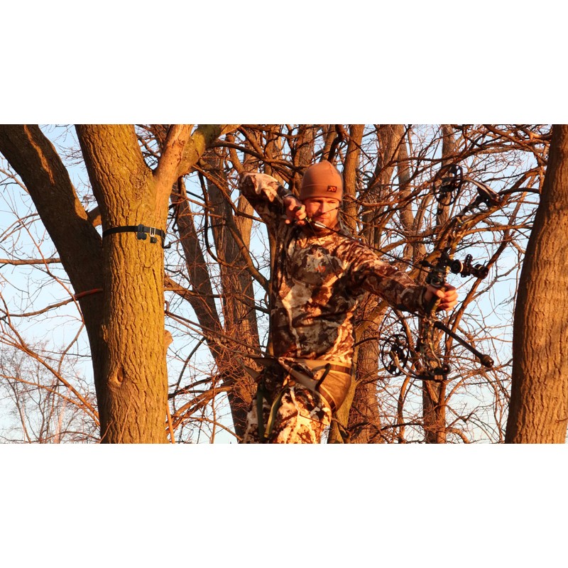 - All metal construction, no plastic parts, 6-feet strap fits trees up to 20-Inch diameter, metal hooks with rubber sleeves for protection of your valued gears, No more worries about hanging your heavy pack or valuable camera and binoculars on a weak screw in hook or plastic hook and buckle assembly, Definitely a nice tree saddle platform accessories to your hunting gear.